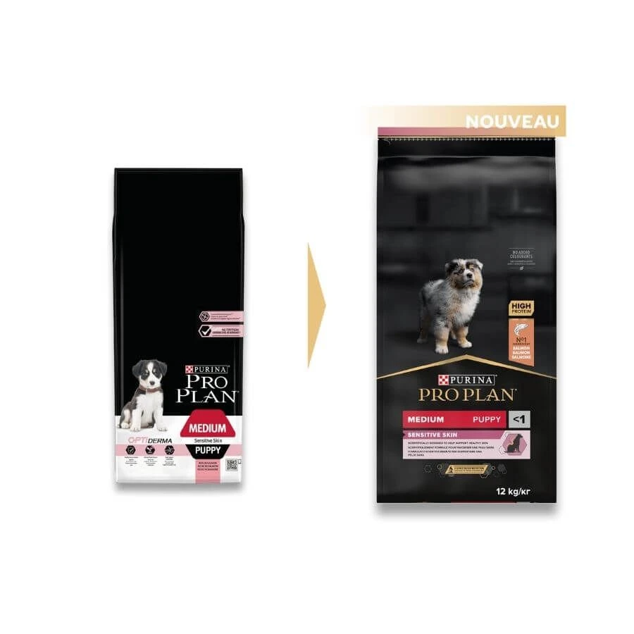 Pourquoi choisir Purina Pro Plan OptiDerma Medium Puppy Sensitive Skin 12 kg au saumon ?