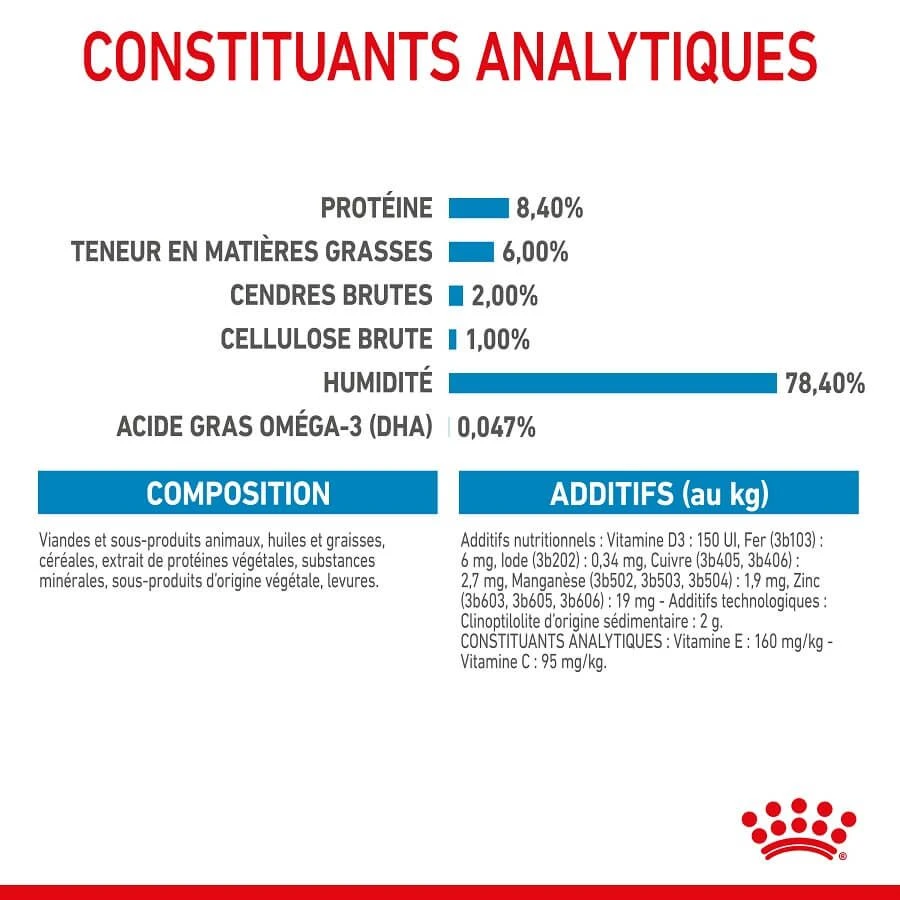 Vous pourrez associer cette alimentation humide avec les croquettes Royal Canin Puppy medium.