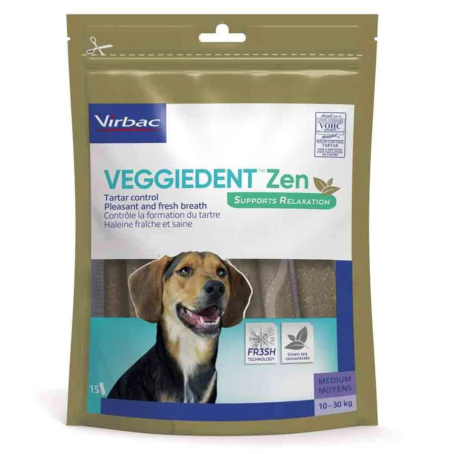 La mauvaise haleine est un problème majeur pour les propriétaires de chiens ainsi que le stress chez le chien. Veggiedent Zen propose une formule complète afin de vous permettre de prendre soin de l’hygiène bucco-dentaire de votre chien tout en le relaxant grâce à la L-théanine.